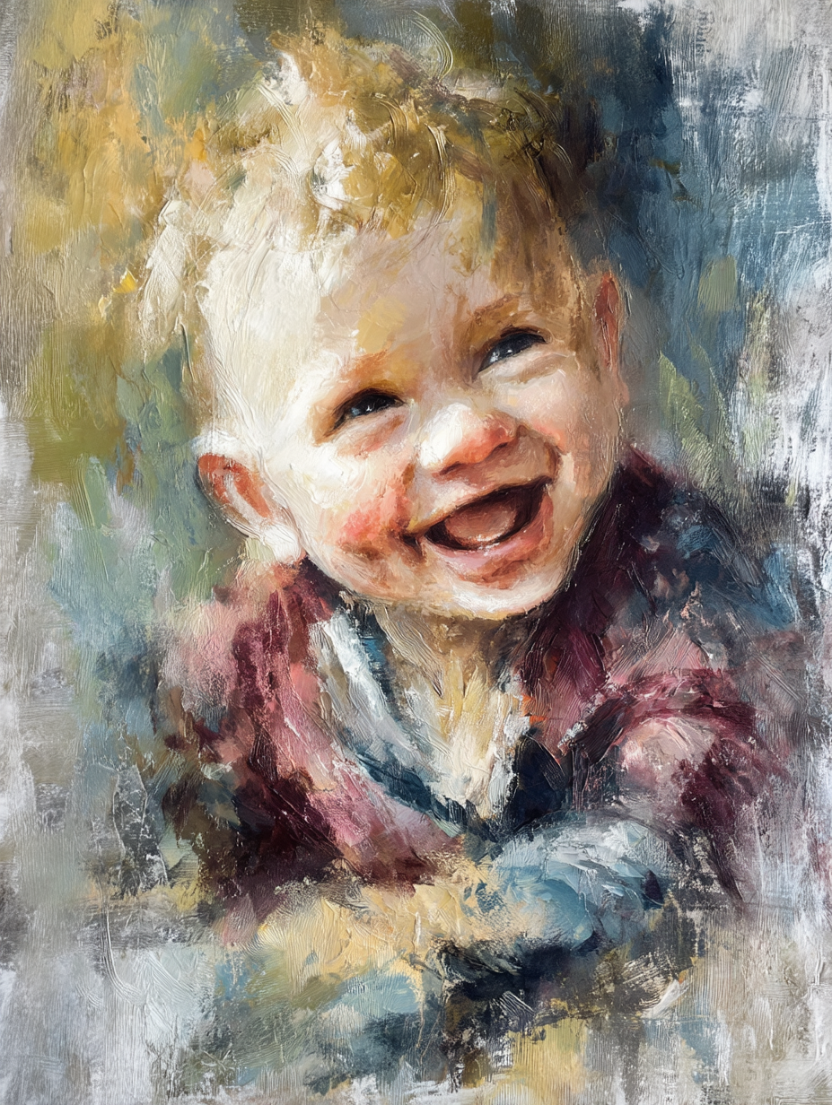 Each painting captures his joyful expression in a unique way, transforming a fleeting moment into timeless art.